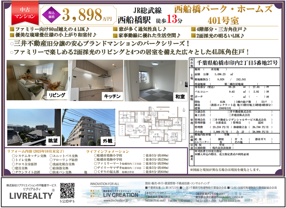 リブリアルティ新着物件!<西船橋パーク・ホームズ>