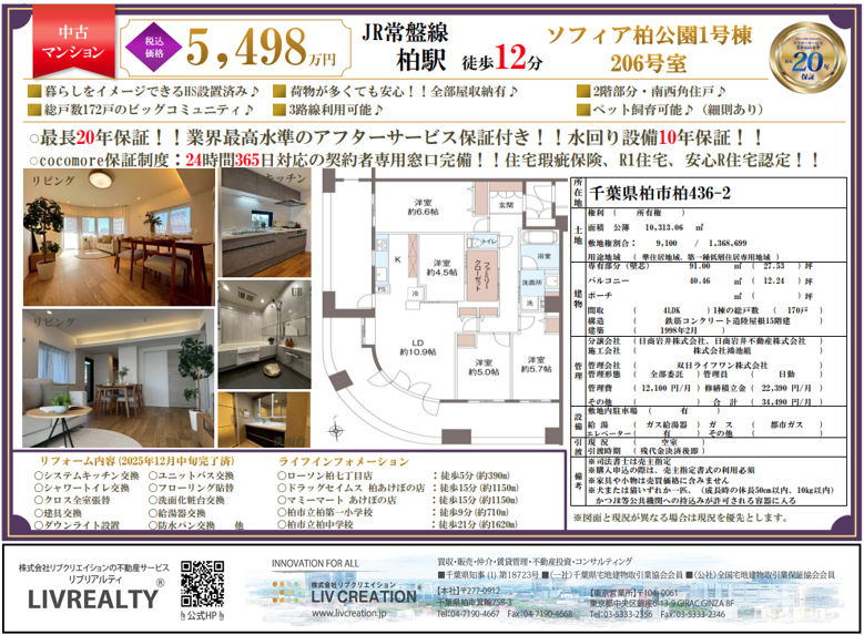 ソフィア柏公園1号棟 206号室 5,598万円 → 変更後:5,498万円